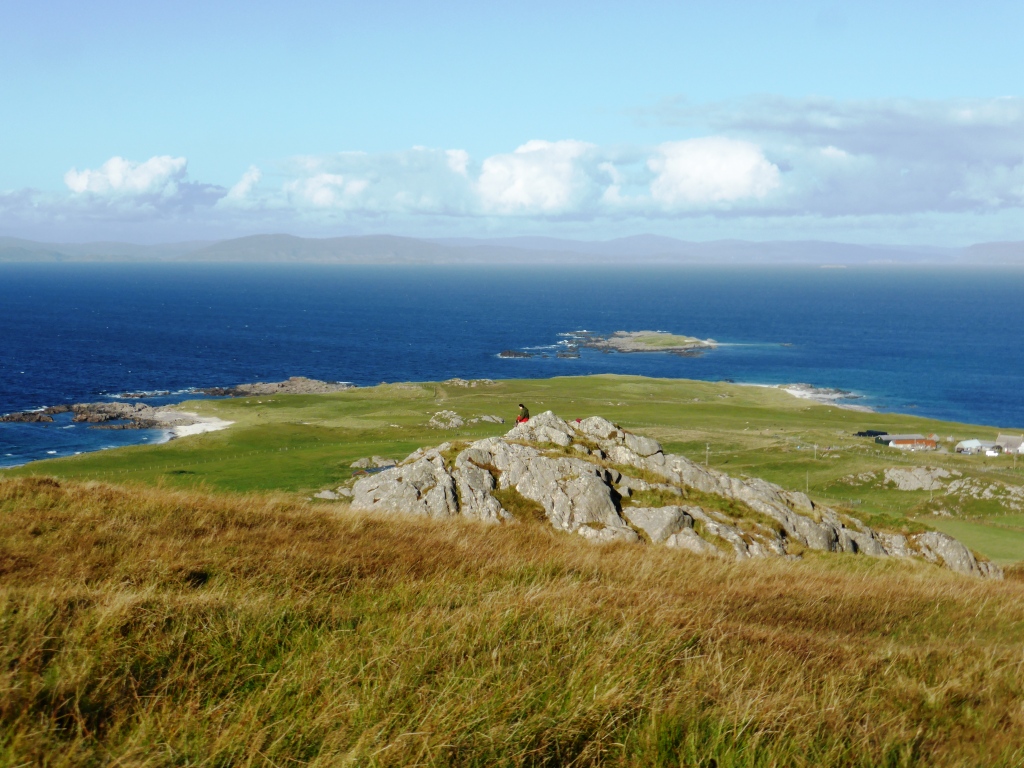 The weather in Iona was so good that I decided on my first evening to climb the small hill dominating the Abbey on this tiny island. From the summit there is a view which more than rewards the small effort for the climb. That, of course, depends on your level of fitness. I am fit but was having frequent attacks of tachycardia which left me faint and without energy. So when my first steps on the turf path began to make me feel faint I stopped, about 5 metres above sea level, and took the sensible step of deciding that I had climbed enough.